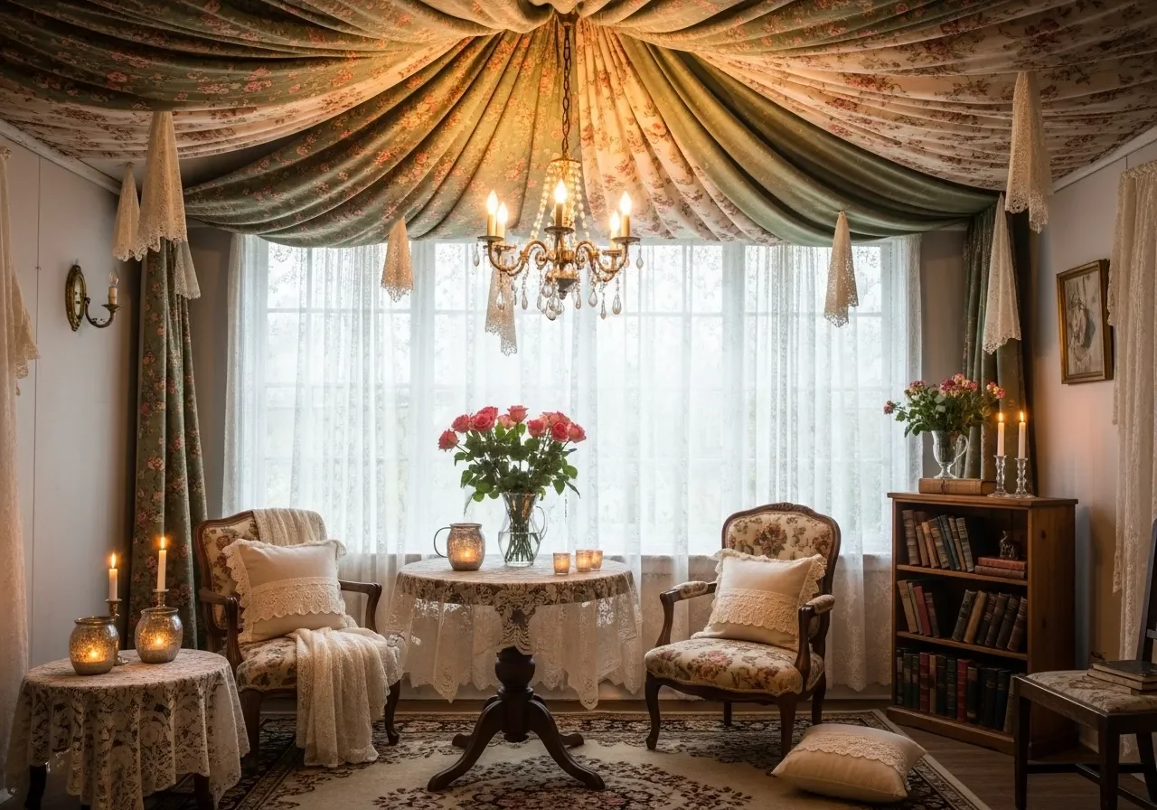 Use vintage or retro fabrics on the ceiling to give your room nostalgia and character. Think floral drapes, lace fabrics, classic prints—there’s charm in the past.