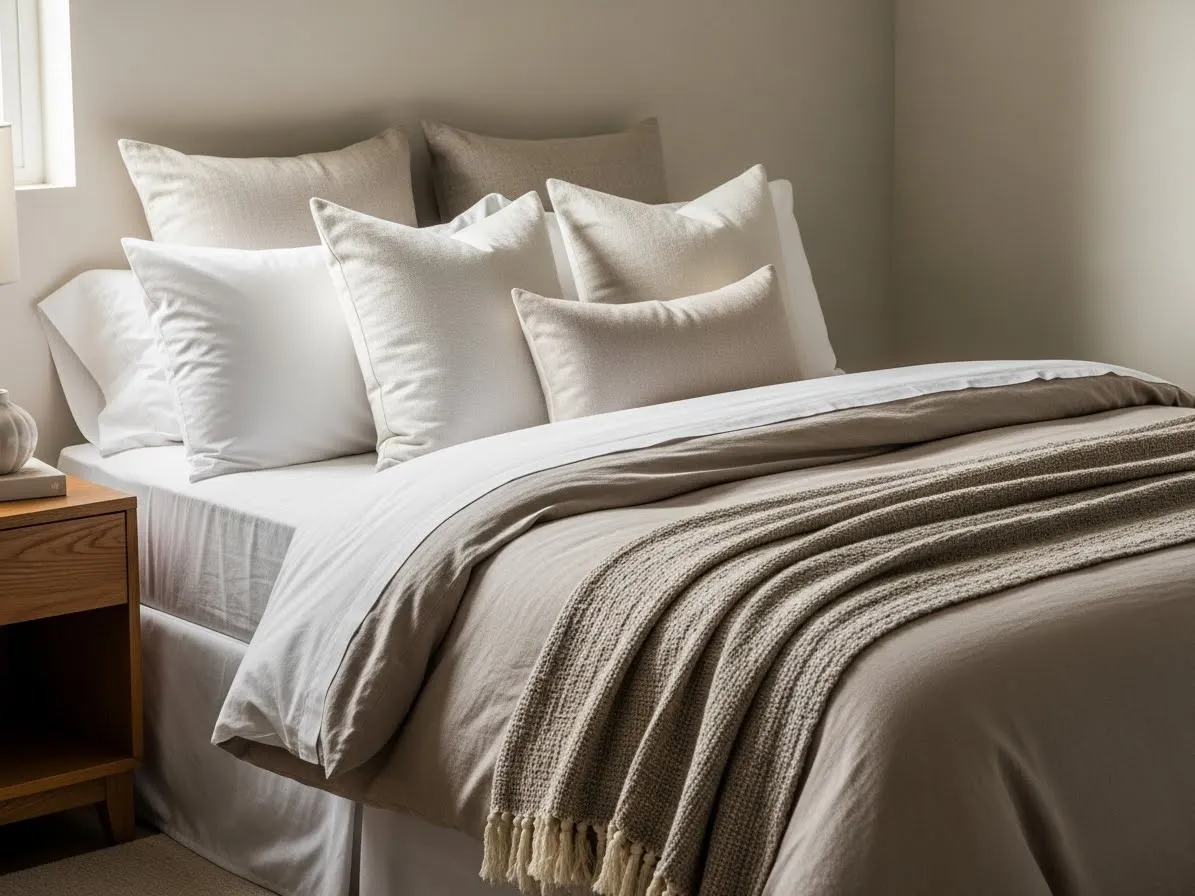 Layered bedding instantly makes a bedroom feel cozy and complete. Start with good-quality sheets, then add a duvet or comforter, and finish with a throw blanket or quilt. Pillows in different sizes also help create a soft and inviting look.