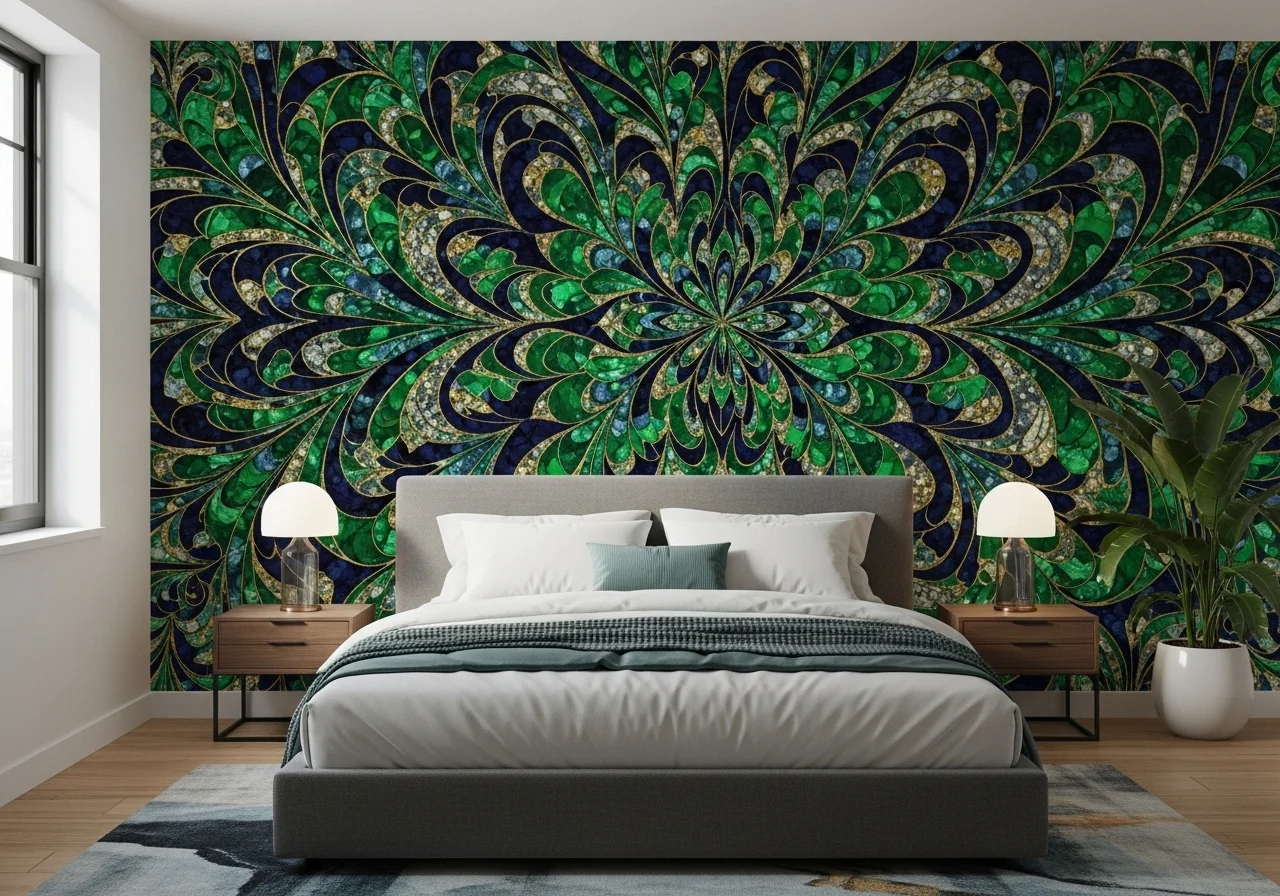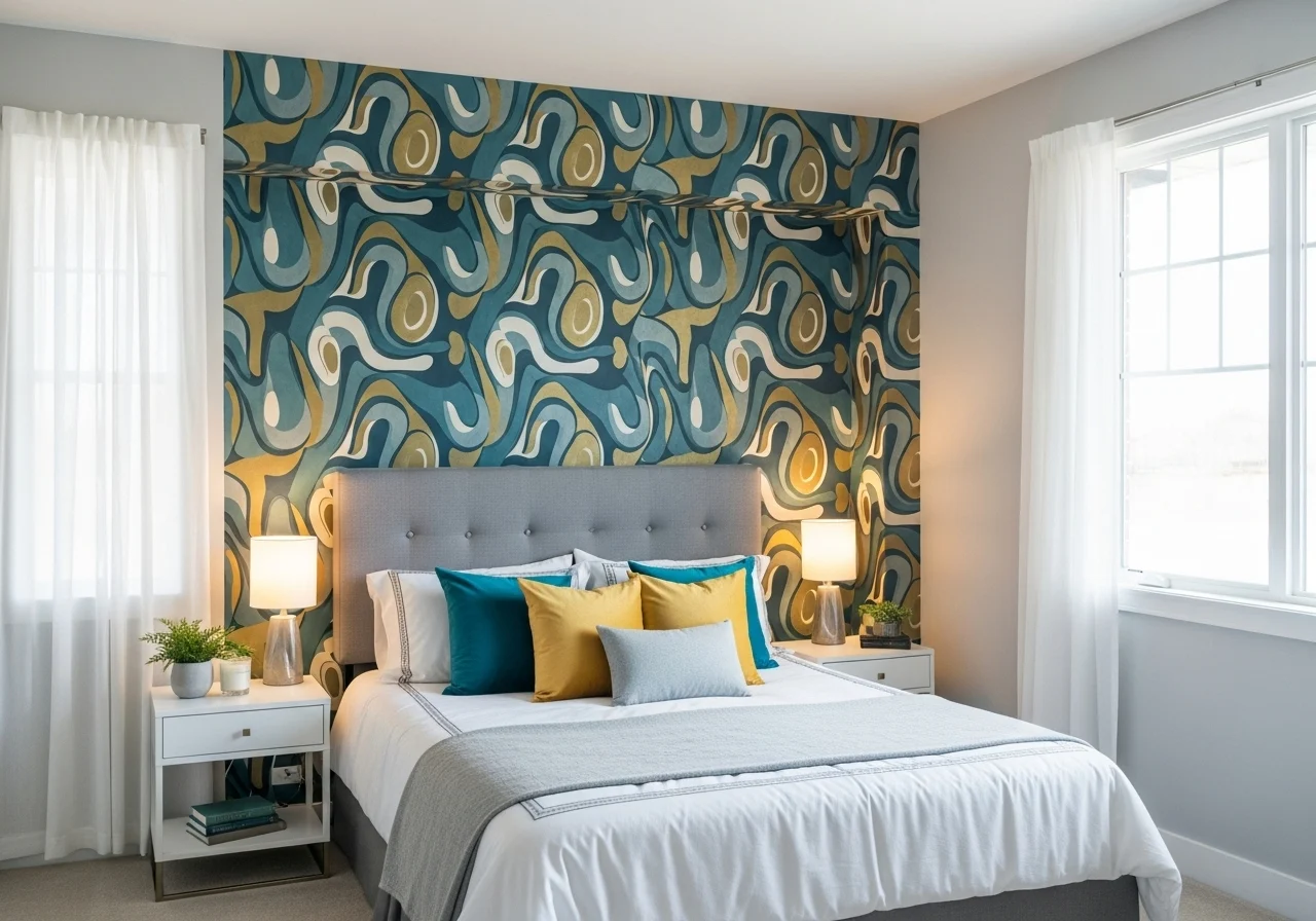 A feature wall adorned with wallpaper or a mural can create a dramatic statement. Go for bold colours or intricate designs to transform your bedroom.