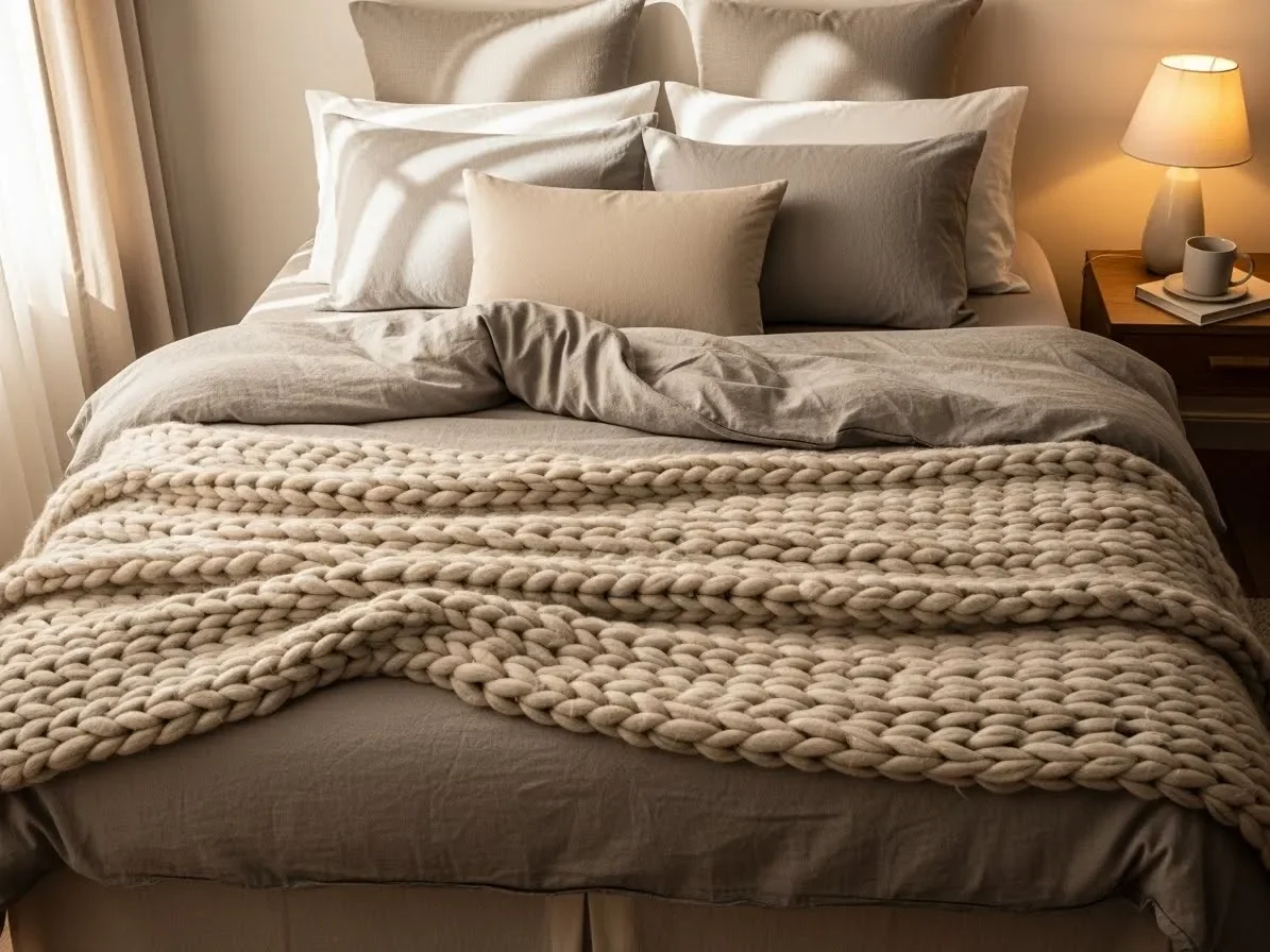 Textures catch the light and create visual dimension. Even simple bedding instantly looks styled when you add a textured layer at the end.