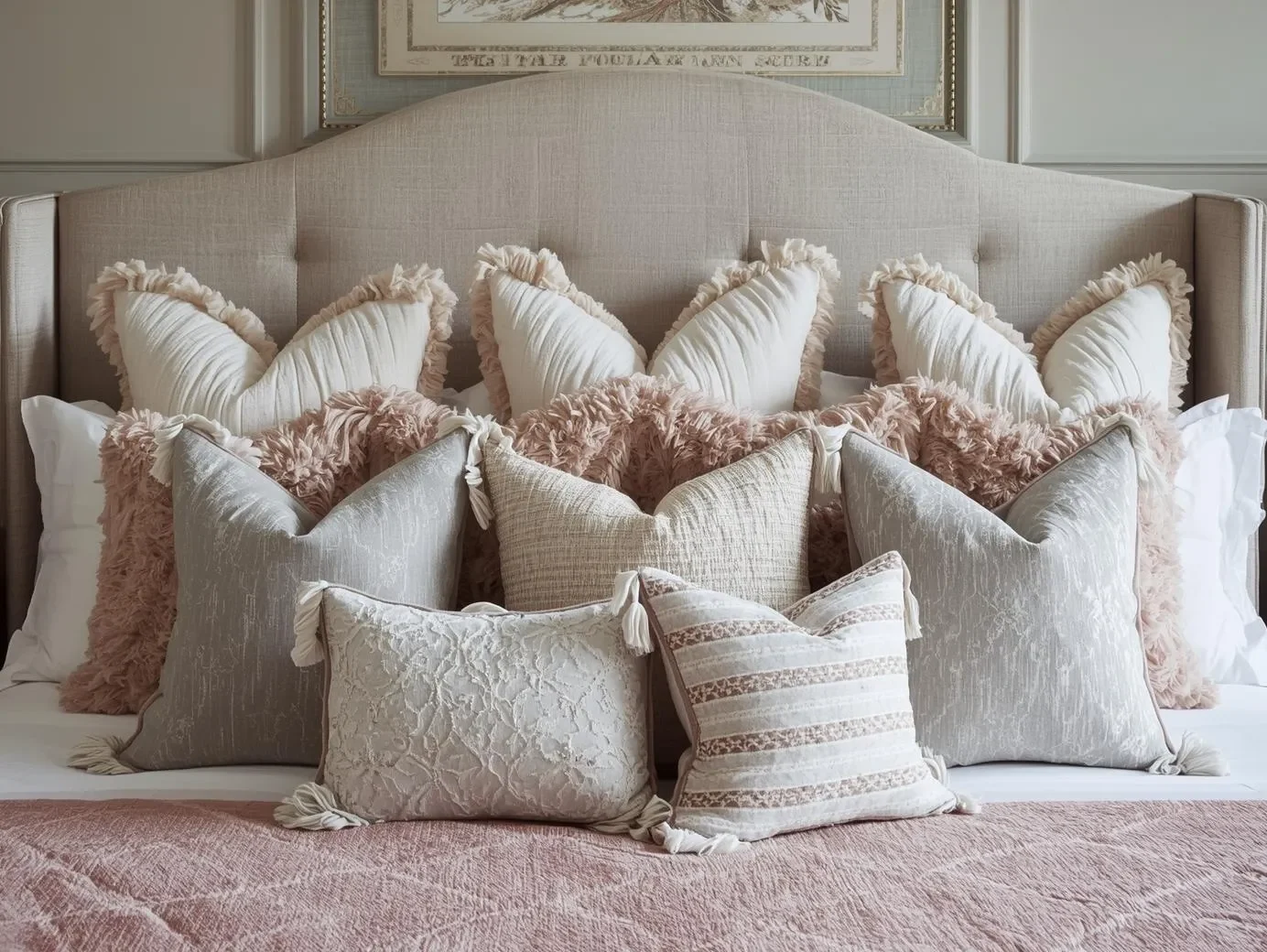 How many pillows should be on a bed? A standard styling formula is: 2 sleeping pillows + 2 Euro pillows + 1–2 decorative pillows. This setup looks polished without feeling overwhelming.