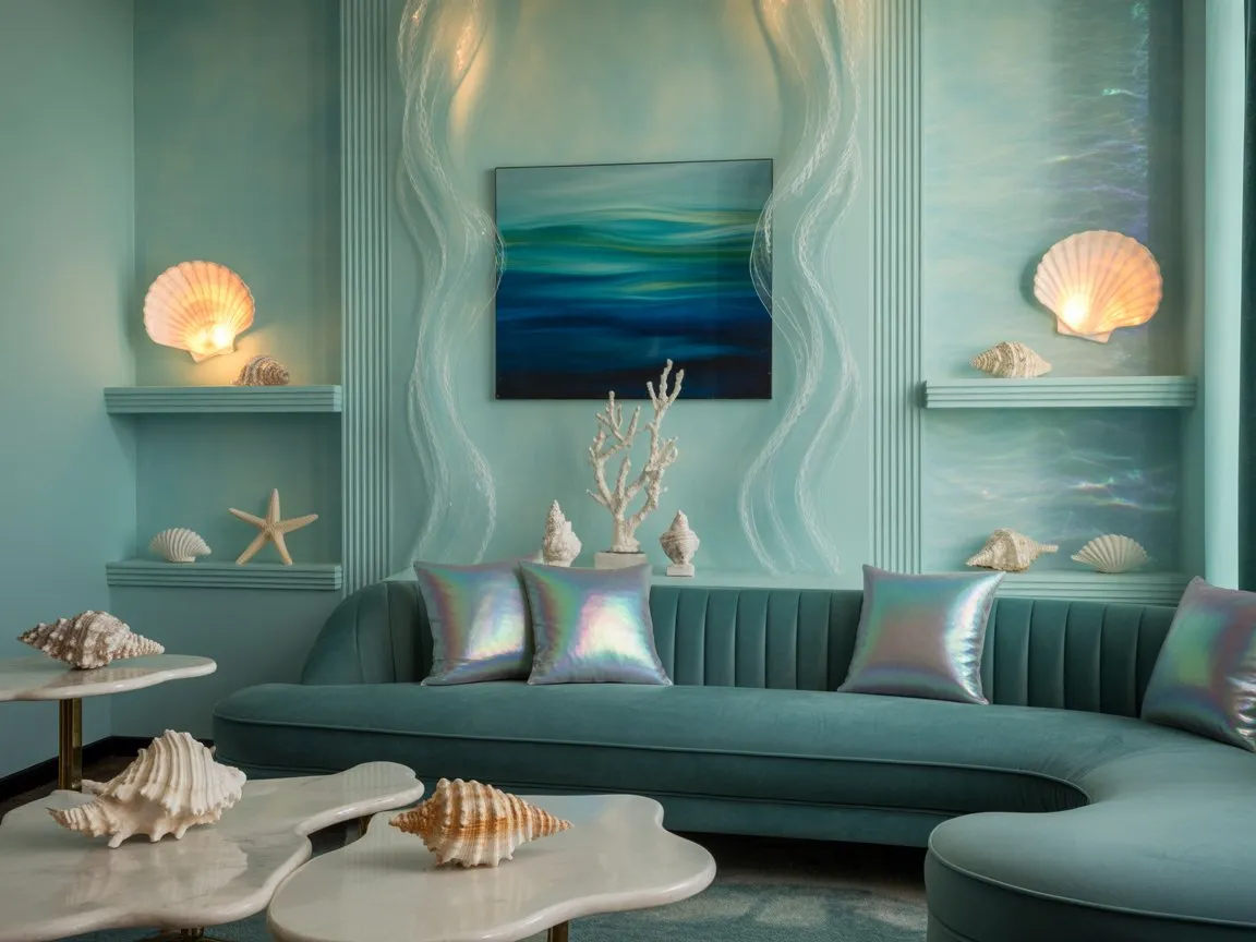 Mermaid home decor doesn’t have to feel childish. In living rooms, subtlety is key.