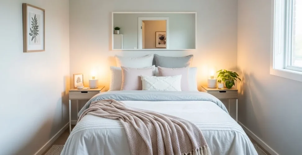 Mirrors are one of the easiest ways to make a small bedroom feel larger.