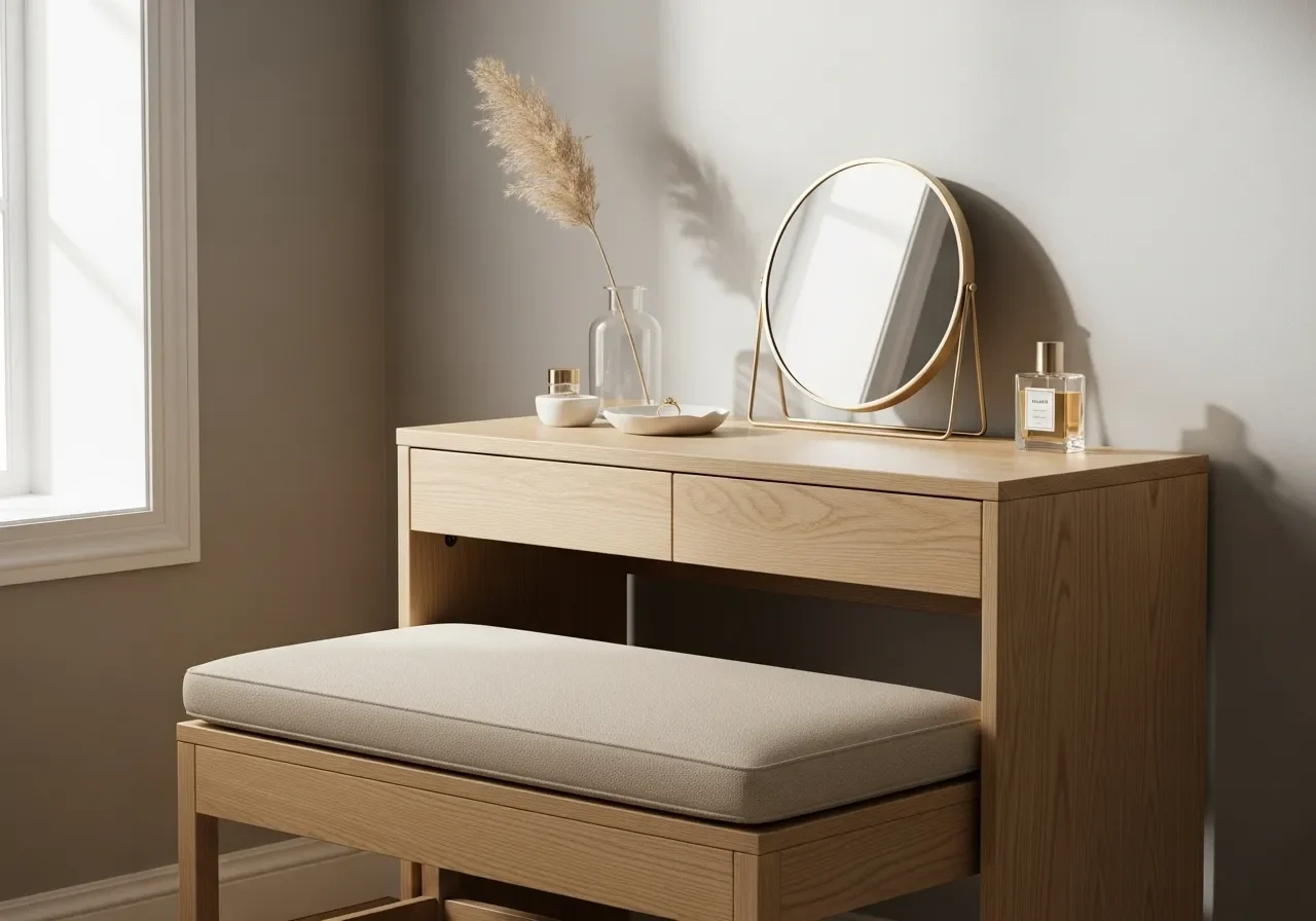 - Compact Mirror & Drawer Setup – A small mirror with storage is functional and stylish.